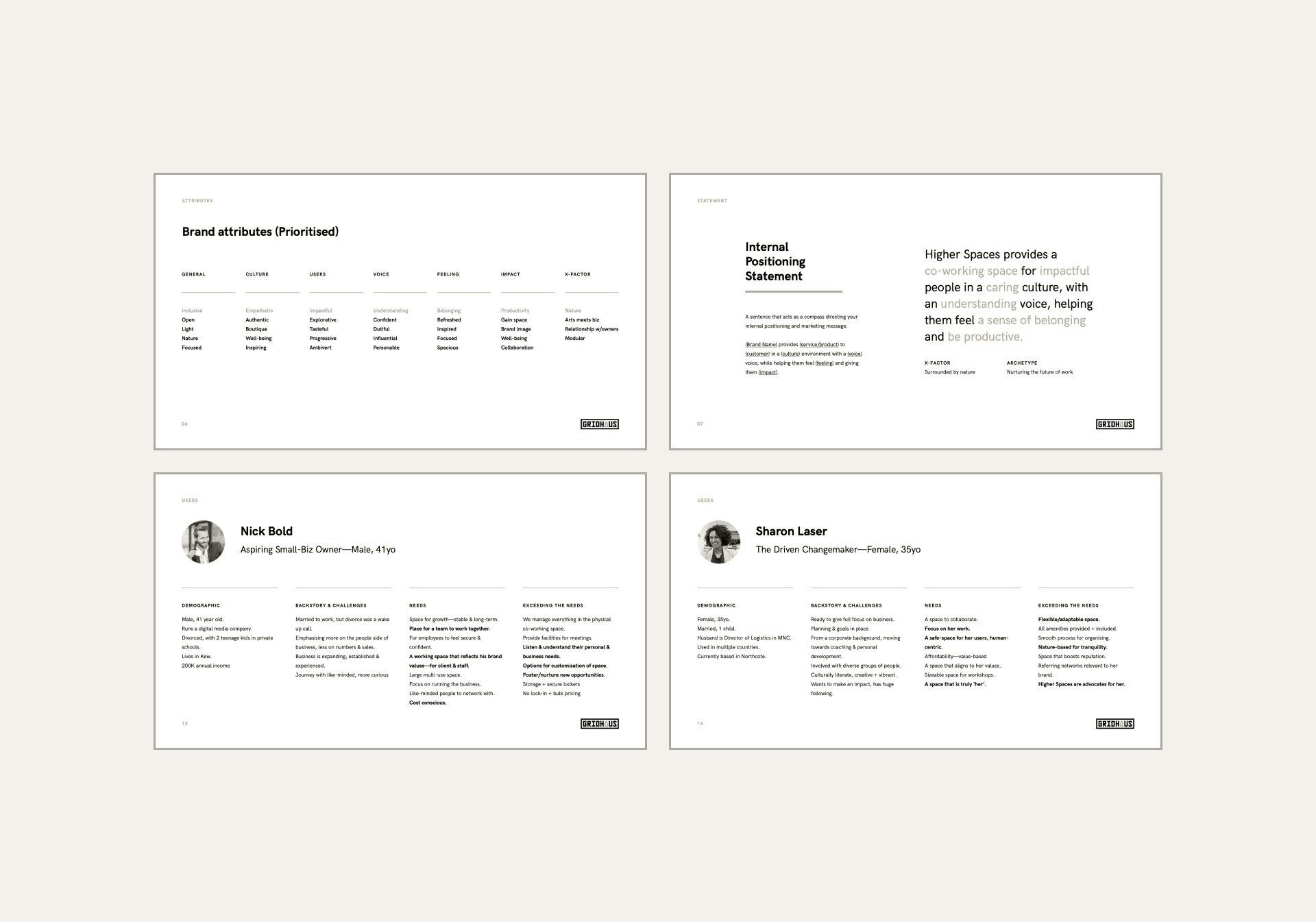 These discovery exercises gave both teams objective points of reference to weigh what type of identity or personality best represented the Higher Spaces brand.